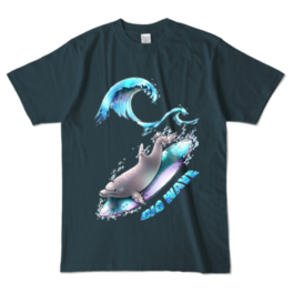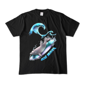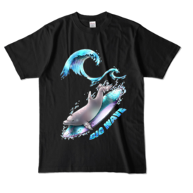 【カラーTシャツ:黒:紺】イルカ(ピンク)/片面・両面