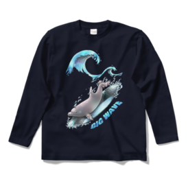 【長袖Tシャツ:黒:紺】イルカ(黒)/片面・両面