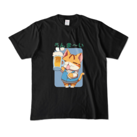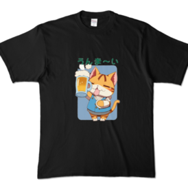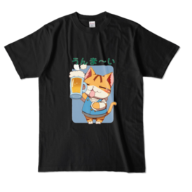 カラーTシャツ - XL - ブラック (濃色)ビールを飲むネコです