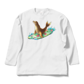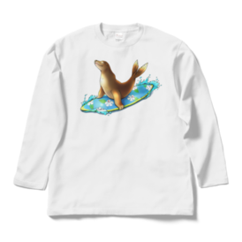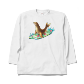 【長袖Tシャツ:白・両面】アシカ(4種類)