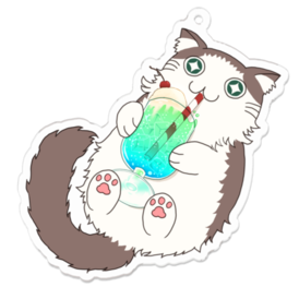 ウキウキでクリームソーダを飲む猫のアクリルキーホルダーです、喫茶店へのお供にどうぞ。 この商品はpixivFACTORYで作られた商品です。サンプル画像は完成イメージのため、実物と異なる場合があります。