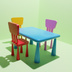 【シンプル3Dモデル】キュートなテーブルとイスのセット
