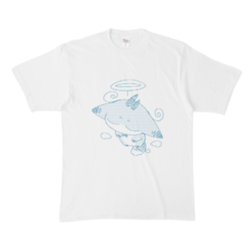 Tシャツ - XL - 白よわくてもろい、なにかあるとすぐに消滅してしまう…そんな儚い存在であるペロチャンの″儚さ″をイメージしたTシャツです。 両面印刷で、表側は淡い純粋なタマシイの色をしたペロチャン、裏側は背中に″てんしのはね″が生えたようなデザインになっています。 このTシャツを着たらペロチャンといっしょにおそらにいけるかも…? この商品はpixivFACTORYで作られた商品です。サンプル画像は完成イメージのため、実物と異なる場合があります。
