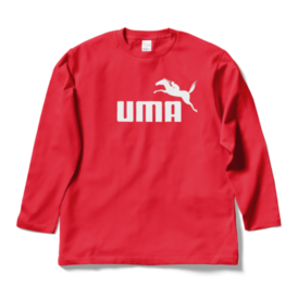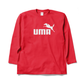 ロングスリーブTシャツ - XL - レッド障害レースで飛越する馬の躍動感あふれる姿をデザインしたロゴマークで、濃色ボディ用白色プリントです この商品はpixivFACTORYで作られた商品です。サンプル画像は完成イメージのため、実物と異なる場合があります。