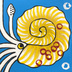 絵の具チューブを直接押し当てて、アンモナイトの殻に付いたフジツボを表現しました。赤いので少し痛々しいですね。