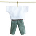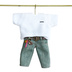 ▶︎金具/ゴールド ▶︎バックル/アンティークゴールド ▶︎革/茶 ▶︎ストラップ/ピンク ピンクのストラップがドールのポップなかわいさと相性抜群✨ 色褪せた絶妙な色合いのデニムとブラウンのレザーで賑やかな夏のコーデにぴったりです🍍 ※画像によっては革の色味が実物より鮮やかに映っています。実際はブルーデニムに使用している革の色と同じブラウンです。 ____タックインTシャツセット共通のご案内____ 白黒T×デニムにカラーストラップがついています。 つい白黒の服を選びがちでもワンポイントなら取り入れやすさ◎ あえて“このコーデに合うストラップの色”を選んでいるので、推し=推し色だけにこだわらず、色やファッションをより自由に、小さな推しと楽しんで貰えたら嬉しいです。 ▶︎オビツ11(身長調整なし)サイズ基準で制作しています。 ※ ねんどろいどどーるも通るように腰部分のみ調整してます。 但し、他は全てオビツ11サイズ基準ですので、オビツ11に近い頭身になるねんどろいどどーる身長調整パーツを使用していただくか、身長調整なしのねんどろいどどーる着用の場合はオーバーサイズになることをあらかじめご了承下さい。 ▶︎頭パーツを外して着用するタイプです。 着せ方はSNSへアップ致しますのでよろしければご覧ください。 ▶︎タックインになるように前側で縫い合わせている為、上下セットです。 ※上下別々には出来ませんが、腰の位置設定や引きで見た時に全体のスタイルが崩れないようこだわっております。 ▶︎ベルトはずれないようにお尻側で二箇所デニムに固定、ベルトの端も接着剤で留めております。 ▶︎キーケースの小さなホットフィックスは接着されていますが取れやすいので、引っ掻いたり必要以上に触れず優しくお取り扱い下さい。