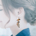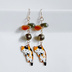 しずくビーズとぶらぶらネコちゃんの可愛いピアス/イヤリング(三毛猫×オリーブグリーン)