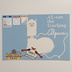 たびたび経営者セミナーに出席しているアルさん。 工房には仕事に関するポスターがたくさん貼ってあります。 「あみもの」と「おふろ」で、裏のデザインも変えています。 ◼︎あみもの アルさんが、自分の毛とお友達からもらったグレーの毛をミックスしてセーターを編んでいます。 ◼︎おふろ お風呂で毛をキレイにしてから編み始めます。 サイズ: 100×148mm 《アルさんプロフィール》 ペルー生まれ日本在住、本名アルベルト。 夏場&毛が生えるまではバイトを掛け持ち。 ⚫︎ポストカード3枚(600円)以上買うなら アズカリの方が送料がお安いので割安になります。 https://azkari.jp/share/u/10147233162 ⚫︎その他 ポストカードはアート展示会の会場などで無料配布することがまれにあります。 その際はX(旧Twitter)でお知らせしていますので、会場に足を運べる方は是非そちらで。 https://twitter.com/al_san_NFT ただし配布枚数には限りがあります。
