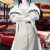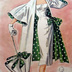 This 1950s dome sleeve coat set is to die for. Beautiful long green polka dot trim coat includes corset top cream pencil skirt and gloves as a one piece custom item. Shoes not included