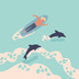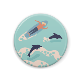 海, 海水浴, イルカ, sea, dolphin/缶バッジ 44mm no.8