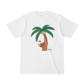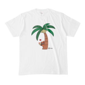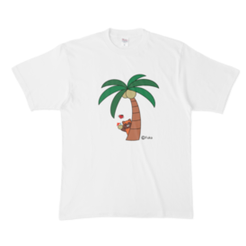 Tシャツ - XL - 白ヤシの木の下でヤシの実ジュースを飲んでいるぽんたんとあっぴぃのTシャツです🦝🍎🌴 この商品はpixivFACTORYで作られた商品です。サンプル画像は完成イメージのため、実物と異なる場合があります。