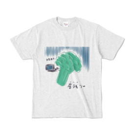 カラーTシャツ - XL - アッシュ (淡色)(3)ブロッコリーのギャグTシャツです。 シャツはアッシュカラーで、イラスト三種類からお選びいただけます。 イラスト詳細は画像からご参照ください。