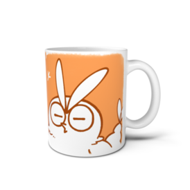 顔がでかでかとプリントされたマグカップです。 一息ついでにお喋りしましょう。