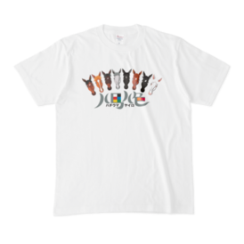 Tシャツ - XL - 白中央競馬で走る全8色の毛色の競走馬をデザインしました。 八馬八色の文字に散りばめた8色のカラーは、レースでの1~8枠の色。 カラフルで楽しい競馬グッズです この商品はpixivFACTORYで作られた商品です。サンプル画像は完成イメージのため、実物と異なる場合があります。