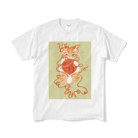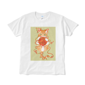 Tシャツ(短納期) - XL - ホワイト秋色の毛糸を持った猫ちゃんのTシャツ サンプル画像は完成イメージのため、実物と異なる場合があります。