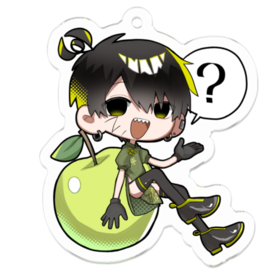 サイズ 5cm×4cm 音源配布動画がYoutubeにて1万回再生を突破した記念に作りました。小物入れやペンケースにつけると丁度良いと思います。裏面印刷がコーティングされていないため、印刷が削れてしまうのが嫌な方はお手数ですが保護カバーや印刷保護シート等を各自ご用意ください。 こちらは諤の衣装差分のSDイラストです。上着を脱ぐとシルエットが寂しくなってしまったので青りんごを描いておきました。