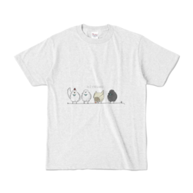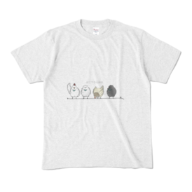 カラーTシャツ - XL - アッシュ (淡色)とりうけもちのリスナー名「ひよウム」をイメージした鳥たちの描かれたTシャツです。 こちらはアッシュ色(薄灰色)となります。