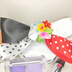 2種類の水玉柄とホワイト、ブラックのリボンを使用した大きめのリボンバレッタです。 サテン生地のリボンで、光沢があります。 中央には、色んな色の花型アクリルビーズと葉っぱ型ガラスパーツを花束風にあしらっています。 華やかな見た目なので、テーマパークやショッピングモールなどの楽しいおでかけのアクセントにいかがでしょうか? 10cmバレッタ金具(材質:銅、鉄) 全長 約12cm×高さ 約6.5cm ※アマチュアのハンドメイド作品であることをご理解の上、作品をお迎え下さい。 ※画像はイメージです。色味や形状などが多少実物とは異なる場合がございます。 ※素材の特性上、画像と全く同じ色合いの仕上がりにはなりません。ご了承の上でご注文お願いします。 ※大変繊細な仕上がりとなっております。お怪我の原因になりかねますので、必要以上に力を加えないで下さい。 ※汗、水に弱い素材でできております。濡れた場合は丁寧に水分を拭き取ると長持ちします。