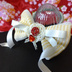 閲覧ありがとうございます。 ◎素人のハンドメイド作品、一点物です。ご理解頂ける方のみご注文ください◎ 刀剣乱舞、鶴丸国永イメージのペンライトリボンです。 末広がりを取り入れたデザインにしております。 サイズはおおよそ、幅10cmほどです。 ヘアゴムでペンライトに固定する形ですので、ペンライト以外にもうちわリボンやヘアアクセサリー等にもお使いいただけます。 中央の水引細工は接着剤で固定しておりますが、もしも接着剤が剥がれてしまったときの保険として、軽く縫い付けもしております。 あくまで保険ですので、接着がゆるくなりましたら、お手持ちの接着剤で固定し直して頂けますと、長くご愛用頂けます。 写真に写っている台座は付属しません。 ブースト特典として、水引ヘアピンをお一つおつけしております。(色柄はお選び頂けません。金額で本数は変わりません。ご容赦ください。)