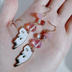 なんとぶらぶらさせられている可愛い白猫ちゃんチャームをメインに2色のしずく型チェコビーズと幻想的な輝きが素敵なルナフラッシュを合わせたユニークで可愛いピアス/イヤリングになっております☆ メインのお色はもちろん白猫のホワイト色、それぞれピンクとブルーが混ざり合ったピンク系のしずくビーズを合わせて丸でお菓子みたいなふんわりと可愛い雰囲気を加えたお洒落な色合いでまとめました☆ 白猫ちゃんがお好きな方にはもちろん、ユニークなデザインがお好きな方やしずくビーズやルナフラッシュがお好きな方におすすめの作品となっております♪ アレルギー対応のピアスやイヤリングへの変更についてはご注文時にオプションよりご希望金具をお選び下さい。 ※こんな方におすすめ♪ *大切な方へのプレゼントに *揺れるデザインがお好きな方に *ネコちゃんがお好きな方に *ユニークなデザインがお好きな方に ☆しずく型チェコビーズ オパールピンク 9x6mm ☆しずく型チェコビーズ コスモポリタンデュアルコードAB 9x6mm ☆ぶらぶらネコチャーム 白猫 約2.5cm ☆ルナフラッシュ ピンク 8mm玉 ☆丸カン ☆9ピン ☆ピアス用金具(フック式☆ゴールド) ※少しだけ重たい作品となる為、キャッチを付けさせて頂きます。 長さは約6.5cmとなっております。(1cm程のピアス金具を含む)