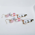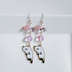 しずくビーズとぶらぶらネコちゃんの可愛いピアス/イヤリング(白猫×ピンクライトブルー色)