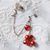 ビーズと音符のピアス/イヤリング(赤)