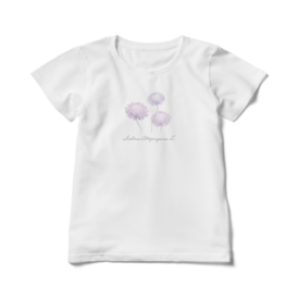 レディースTシャツ - L - 白好きなお花と楽しむ暮らし♪ 透明感ある水彩タッチのシンプルなスカビオサと花の学名をプリントしました。 スカビオサの花がお好きな方、 お散歩、部屋着、エクササイズなどカジュアルな装いに。 レディースタイプ。 【サイズ】 M 身丈61cm 身幅43cm 肩巾36cm 袖丈16cm L 身丈64cm 身幅46cm 肩巾38cm 袖丈17cm Pixiv FACTRYから発送されます。