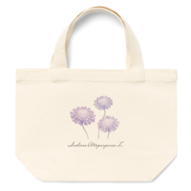 トートバッグ - S - プリント面積小好きなお花と楽しむ暮らし♪ 透明感ある水彩タッチのシンプルなスカビオサと花の学名をプリントしました。 スカビオサの花がお好きな方に。 Pixiv FACTRYから発送されます。 【本体サイズ(mm)】 300 × 200 × マチ100 【持ち手サイズ(mm)】 25 × 290