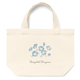 トートバッグ - S - プリント面積小好きなお花と楽しむ暮らし♪ 透明感ある水彩タッチのシンプルなネモフィラと花の学名をプリントしました。 ネモフィラの花がお好きな方に。 Pixiv FACTRYから発送されます。 【本体サイズ(mm)】 300 × 200 × マチ100 【持ち手サイズ(mm)】 25 × 290