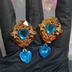 ライトブラウンのクリアパーツと相性の良いアクアブルーハートの少しゴージャスなピアス。フラメンコ等のアクセサリーとしてもお使い頂けるかと思います こちらは挟んで着用するタイプのピアスになりますのでキャッチはお付けしておりません。必要な場合はご連絡下さい 全長:約4.5cm 重さ:片耳約7g ※異素材の為、はんだ付けではなく接着剤を使用しております。接着面が小さいとパーツが取れやすいので、接着剤をはみ出して付けている場合があります。ピアスキャッチ部分を開く際は、本体とアクセサリーパーツの接着部分を押さえながらご着用下さい ※強い力をかけたりぶつけたりするとパーツが取れる可能性があります。取り扱いにはご注意下さい