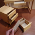 1/3サイズのデスクです。 机本体、チェストの2点セットです。 机本体に引き出し一つ、チェストは三段引き出し(下段仕切り付き)です。 こちらは受注生産となります。納期等よくご確認の上ご購入下さい。 ※トップ画像はクリア塗装品です。(無塗装品は後半の画像参照) サイズ ・机 天板サイズ45cm×20cm 高さ28cm ・チェスト 高さ24cm 横幅13cm 奥行き15cm (おおよその寸法です) ※表に現れない箇所や引き出し内部は桐材、シナなど本体とは違う材料になります。 天板など幅広の部材は幅接ぎです。クリアや染色塗装で色の違いが現れることがあります。 ※ドール用の場合はサイズをよくご確認下さい。1/3スケール内で多少調整は可能ですのでご相談下さい。調整幅によっては追加料金が発生します。 ※机のみ、チェストのみ単品や椅子についてなどはご相談下さい。