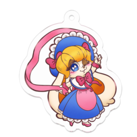 アクリルキーホルダー - 50 x 50 (mm)大きな耳とたれ目がチャームポイントのローズ色のリボンを操るオリジナルキャラクター、『リボンローズ』ちゃんのアクリルキーホルダーです。 ※この商品はpixivFACTORYで作られた商品です。サンプル画像は完成イメージのため、実物と異なる場合があります。