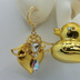 カラフルなアルミホイルで包んだ昔懐かしいチョコレートのようなメタリックなハートとアヒルちゃんのイヤリング。アシンメトリーなデザインなので、お手持ちのアクセサリーと組み合わせる事も可能です 全長:約6.5cm(ハート) 重さ:約6g(ハート) 全長:約2.8cm(ダック) 重さ:約7g(ダック) ※量産パーツ使用の為、細かい傷やメッキの剥がれ等があります ※異素材の為、はんだ付けではなく接着剤を使用しております。接着面が小さいとパーツが取れやすいので、接着剤をはみ出して付けている場合があります。ピアスキャッチを外す際は、本体とアクセサリーパーツの接着部分(丸い部分)を押さえながらご着用下さい ※強い力をかけたりぶつけたりするとパーツが取れる可能性があります。取り扱いにはご注意下さい