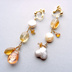 *セール中¥5000→¥4500 潤んだような艶のある天然石を中心に組み上げたイヤリング(※フックタイプのピアスへの変更も可能です。ピアスをご希望の方はご注文時にお申し付けください)。 暖かな夕暮れ時の空が耳元で揺れるアクセサリーです。 天然石たちの色味や艶、カットによる輝きをすみずみまでお楽しみください。 どうかときめきをお届けできますように。 【使用天然石】 シトリン・トルマリン・マルチカラーサファイア・淡水パール・ダブレットクリスタル(クリスタルの間に銅色の箔(真鍮)が挟み込まれたものです)