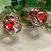 レジンにて作製しました。 細長いラメと炎の柄で煉獄さんの力強さを表しました。 ラメは赤色なのですが、光が当たるとキラキラと虹色に輝き、 炎の柄は左右のデザインを変えています。 透明感の美しいイヤリングです。 季節問わずお使いいただけると思います。 耳にも優しく沿うデザインなので、着けやすいです。 是非御手に取っていただけましたら嬉しいです✨。 (直径)横→約1.5㎝(一番幅のあるところ) 縦→約1.6㎝( 〃 ) (重さ)片耳→2g (仕様)ネジバネ式イヤリング(ゴールド) ※ハンドメイド作品です。 ※気泡は作品のアクセントと捉えていますので、厳密に、細部に渡り取り除くことはしていません。 ※レジンを使っております。金具は真鍮です。アレルギーのある方は購入をお控えください。 ※購入者様の都合によるキャンセル、返品は出来かねますので予めご了承ください。 ※モニター環境により色に誤差が生じてしまうこともあるかと存じます。ご了承くださいませ。 以上のことをご理解のお買い求めいただけますと幸いです。