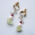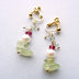 耳元にちいさなクリームソーダを。 ぷるぷるつやつやな質感の天然石を使ってイヤリングをお作りしました(※フックタイプのピアスへの変更も可能です。ピアスをご希望の方はご注文時にお申し付けください)。 ぱちぱち弾ける炭酸をイメージした小粒のフローライトも優しい色味で、甘くて優しいクリームソーダの雰囲気です。 どうかときめきをお届けできますように。 【使用天然石】 プレナイト・トルマリン・フローライト・淡水パール