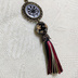 刀剣男士のイメージカラーのタッセルを手作りしたバッグチャームです。 素材はレジン・合金・タッセルはレーヨンです。 紋は表面のみで裏はありません。 大きさはチェーン含め15~16cm程度です。 【注意】 1.ハンドメイド作品のため、工業製品のような強度はございません。 2.タッセル部分は水に弱いので、雨天のご使用はおやめください。 また、使っているうちに糸先がほつれてきますので 毎日の通勤通学などでのご使用はお勧めできません。 3.ハンドメイド作品のため、どの作品も全く同じに作ることはできません。 見本写真とはタッセルの雰囲気 (2~3色を組み合わせてタッセルを作るため 糸の巻き具合によって色の出方が異なります。)が 異なる場合がございます。 4.撮影の際、ライトボックスの照明がレジン部分に映りこんでいます。 列状の白点はレジンの汚れではございません。