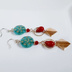 メタルプレートとしずくビーズが揺れるサークルフープがお洒落なピアス/イヤリング(クリスマスカラー)