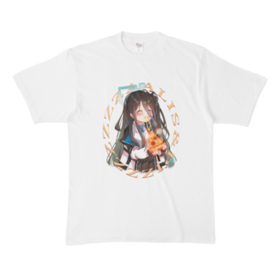 Tシャツ - XL - 白ピザを食べてるアリスをTシャツにしました これを着れば飯テロにも癒しにもなります。 この商品はpixivFACTORYで作られた商品です。サンプル画像は完成イメージのため、実物と異なる場合があります。