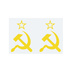 ソ連の国旗などに使われている「鎌と槌」に五芒星を加えたステッカーです。 画像で白に見える部分は台紙です。ロゴやイラスト部分のみを貼り付けるタイプのカッティングステッカーです。 幅50mmとスマホに貼るのに最適なサイズ。 塩化ビニール製・屋外使用可能な素材を使っています。スーツケースや家電製品に貼るのもおすすめです。 「鎌と槌」または「槌と鎌」「鎌とハンマー」(ロシア語 Серп и молот 英語 sickle and hammer)は鎌と槌をあわせた標章。鎌は農民を、槌は労働者(とくに工員)を象徴し、農業労働者と工業労働者の団結を表したもの。これに五芒星を配したものが旧ソ連の国旗としてに用いられていました。この絵柄をそのままステッカーにしました。 絵柄のサイズは幅53×高さ79mm。2片セット。表面にリタックシート(転写シート)を貼った状態で送ります。 【色】 つやあり黄色 【素材】 塩化ビニール製シート(屋外用 耐候性3年程度) 表面がなめらかな面には貼れますが、砂壁や土壁などのザラザラした面や布製品には貼れません。 【サイズ】 幅133×高さ88mm 【購入の際の注意点】 写真と実物では多少色味が異なる場合があります。 市販のカッティングマシンを使ってカットし、手作業でリタックシートを貼っているので、ステッカーとリタックシートの間に気泡が入っている場合などがあります。製品の品質には影響しませんので、あらかじめご了承ください。