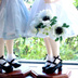 KUMAKOちゃん&MDDさんサイズの天空の庭のドレスセットを 予約受注という形でお作り致します。 大き目の水玉の凹凸がある柔らかな綿ローンを斜めに取り ふわりとしたエアリー感のあるドレスに仕上げました。 胸元に◇型の抜きができるのがポイントです。 ドレスの花(アネモネ)は一点ずつ塗装しています。 カチューシャは星のチャームと霞草で飾りました。 同じチェーンを靴下にも付けて統一感を出しています。 金属部分は光の庭(ピュアホワイト)はゴールドカラーを。 お色違いの湖面の庭(ペールブルー)には シルバーカラーを使用しています。 ※カチューシャの先端などでヘッド等を擦らないよう ご注意ください。メイク剥げや傷が付く可能性があります。 ■お色 光の庭(ピュアホワイト) ■内容物 チャーム付きリボンのカチューシャ、 綿ローンのオフショルダードレス、 リボンタイ付き付け襟、四葉のクローバーのブレスレット、 ソフトチュールパニエ、リボン&チェーン付きソックス 以上6点です。 ■価格 25000円 ■納期 納期は1~2か月を予定しておりますが、 完成次第前倒しで発送致します。 ■注意事項 ・袖の取り外しはできませんが、 肩側の袖山を肩にかけてパフスリーブ風に着る事も可能です。 ・襟のリボンタイは縫い付けてあります。 (取り外し可能できません) ・リボンカチューシャはKUMAKOちゃんのヘッドサイズ(9インチ)に 合わせて制作しております。 小さなヘッドの子には対応しておりませんのでご注意ください。 (チャームはゆらゆら揺れて可愛いです) ・MDDボディに一週間程着用させ色移りのチェックをしました。 色移りはしませんでしたが、環境で変わってくるかもしれませんので 長時間の着用はお勧め致しません。 ・丁寧に制作しておりますがハンドメイドですので 気になさる方、神経質な方はご遠慮ください。 使用ミシンは職業用ミシンとロックミシンです。 あえて処理を施さない部分もあります。 お色違いも出品中です。 よろしくお願い致します。