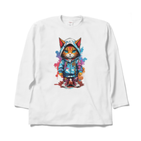 かわいさ満点!フードを被ったなカラフルな猫のロングスリーブTシャツが登場! このロングスリーブTシャツを見た瞬間、欲しくなること間違いなし! #フードを被った猫 #カラフルな猫 #かわいいグッズ #欲しがる #注目の的 #癒しの猫 #可愛いぬいぐるみ #猫好き #ホームデコレーション #癒しの時間 #カラフルな日常 ※この商品はpixivFACTORYで作られた商品です。サンプル画像は完成イメージのため、実物と異なる場合があります。