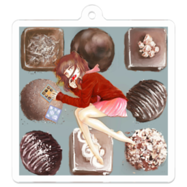 アクリルキーホルダー - 50 x 50 (mm)「君に、食べてほしかった。」 渡せなかったチョコを自分で食べている女の子のアクリルキーホルダーです。 ---------- この商品はpixivFACTORYで作られた商品です。サンプル画像は完成イメージのため、実物と異なる場合があります。