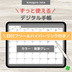 【ずっと使える!!デジタル手帳テンプレート】 1度のダウンロードで毎月繰り返し使えるデジプラ手帳♪ 日付フリーのため、いつでもずっと使えます♪ iPadなどのタブレット端末で「Goodnotes5」などの手帳アプリケーションを使用することを想定しています。 本製品はデジタルコンテンツ商品です。 「.pdf」データでの配布となります。 ※数字ステッカーのみgoodnotes形式となります。 【 セット内容 】 1.日付フリーのマンスリー(リンクつき) 2.日付フリーのバーティカル(リンクつき) 3.日付フリーのウィークリー(リンクつき) 4.日付フリーのデイリー(リンクつき) 5.数字ステッカー&ふせん(日付は手書きでも、ステッカーを使用してもOK!) ※サンプルをご用意しています。ぜひリンクなどの使用感をお試しください。 https://kimagurenote.booth.pm/items/5078809 (サンプルは、背景白となります) 商品の性質上、返品・返金はできませんのでご了承ください。 資料の二次配布はご遠慮ください。 ※ipad用ノートアプリ「Goodsnote」以外での動作確認は行っておりません。手書きノート用のテンプレートとして作成しました。