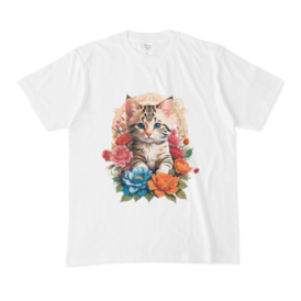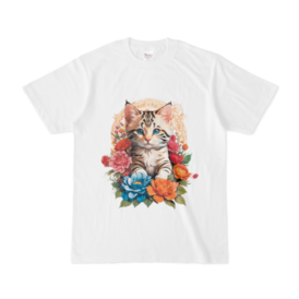 カラフルな花々で囲まれた愛らしい子猫のデザインが特徴♪ サイズ:S、M、L、XL ※この商品はpixivFACTORYで作られた商品です。サンプル画像は完成イメージのため、実物と異なる場合があります。