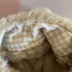 シンプルながらも、もふもふ感で可愛さを強調させたいという気持ちを込めて、ファー生地の着ぐるみを製作致しました。内側はカラーに合わせたギンガムチェック柄の布を使用しております。 ※ホワイトの場合、ファーが短めなのと生地が薄目のため、写真のようにうさ耳が少し離れます。 首元のスナップで着脱も楽ちんとなっております。 お飾りはございませんが、シンプルが良い!飾りは既にあるからそれを付けてあげたい!とにかくふわふわを拝めたい!高級感を感じたい!というあなたにオススメとなっております( * ˊᵕˋ ) 以前別サイトで着ぐるみを出品した際に、「この色でこの子を作れませんか?」と言うご要望を頂きましたので、そろそろ私も着ぐるみを本格的に作りたいなと思った所存です。 〇着用モデルサイズ □17cm用 腕囲:6cm 首囲、腰囲12cm 足囲:7cm 頭囲:28cm □12cm用 腕囲:3.5cm 首囲、腰囲:9cm 足囲:5cm 頭囲:20cm このサイズより大きく差がある場合、着用が難しい可能性がございます。 ・グラフィック社様の著書「きせかえできるぬいぐるみ てづくり推しぬいBOOK」の型紙を使用したぬい本体、もしくは清原株式会社様の「ぬいのボディ」の本体を基準にしております。 ※グラフィック社様の著書「きせかえできるぬいぐるみ てづくり推しぬいBOOK」の型紙を使用して作成しております。 ぬいぐるみ 洋服 小さな洋服 ぬい撮り コスチューム 手作り 趣味 手芸 着せ替え 推し活 ぬい活 着ぐるみ ファー ボア 12cm 15cm 16cm 17cm 他のぬい服作品は #たっこのぬい服 より