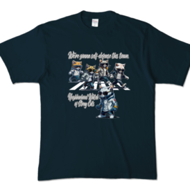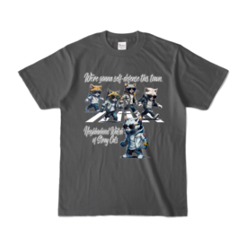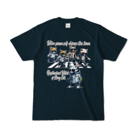 Neighborhood Watch of Stray Cats #002_カラーTシャツ カラー:ブラック、ネイビー、チャコール サイズ:S、M、L、XL ※この商品はpixivFACTORYで作られた商品です。サンプル画像は完成イメージのため、実物と異なる場合があります。