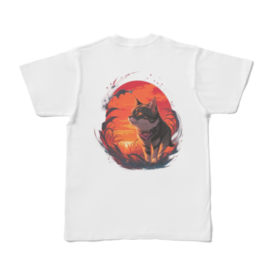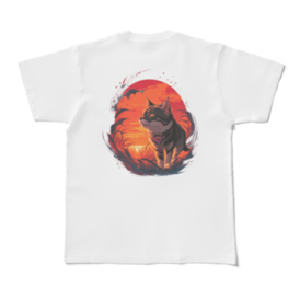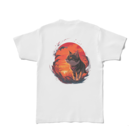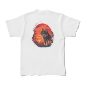 Cat of the Sunset_バックプリントTシャツ サイズ:S、M、L、XL ※この商品はpixivFACTORYで作られた商品です。サンプル画像は完成イメージのため、実物と異なる場合があります。
