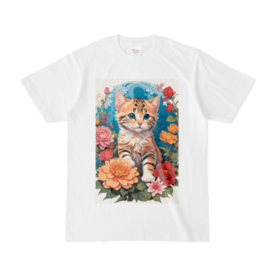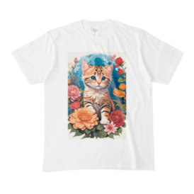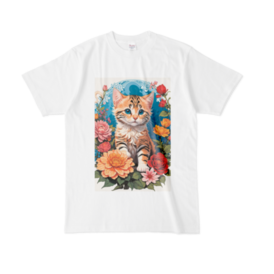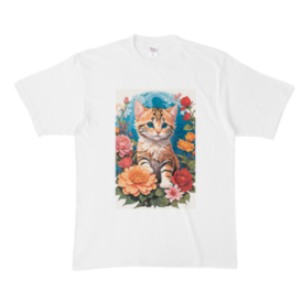 Tシャツ_花と猫 #002 サイズ:S、M、L、XL ※この商品はpixivFACTORYで作られた商品です。サンプル画像は完成イメージのため、実物と異なる場合があります。