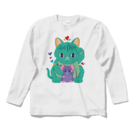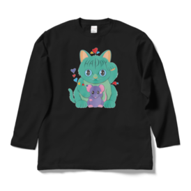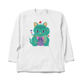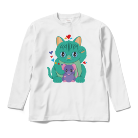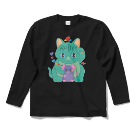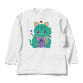 ロングスリーブTシャツ - XL - ブラックカラフルな緑の招き猫です 左手は人を招くと言われ、身につけると幸せになれるかも? この商品はpixivFACTORYで作られた商品です。サンプル画像は完成イメージのため、実物と異なる場合があります。
